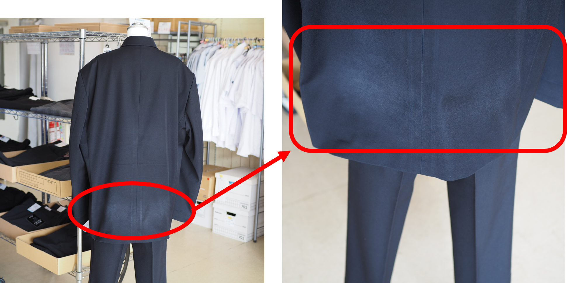 前合せ裾、胸ポケットに白くなっている箇所があります(6,7枚目)