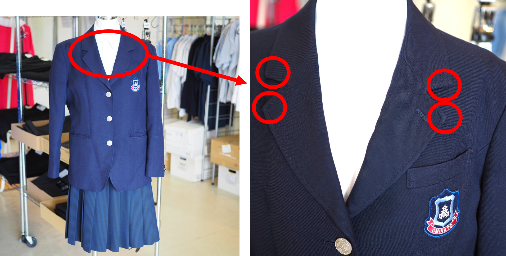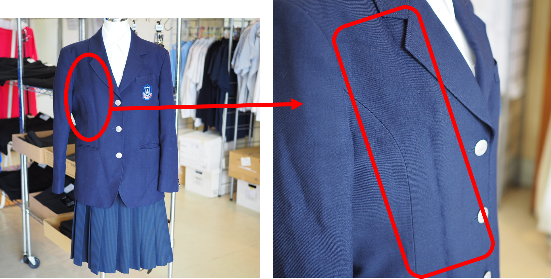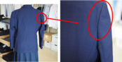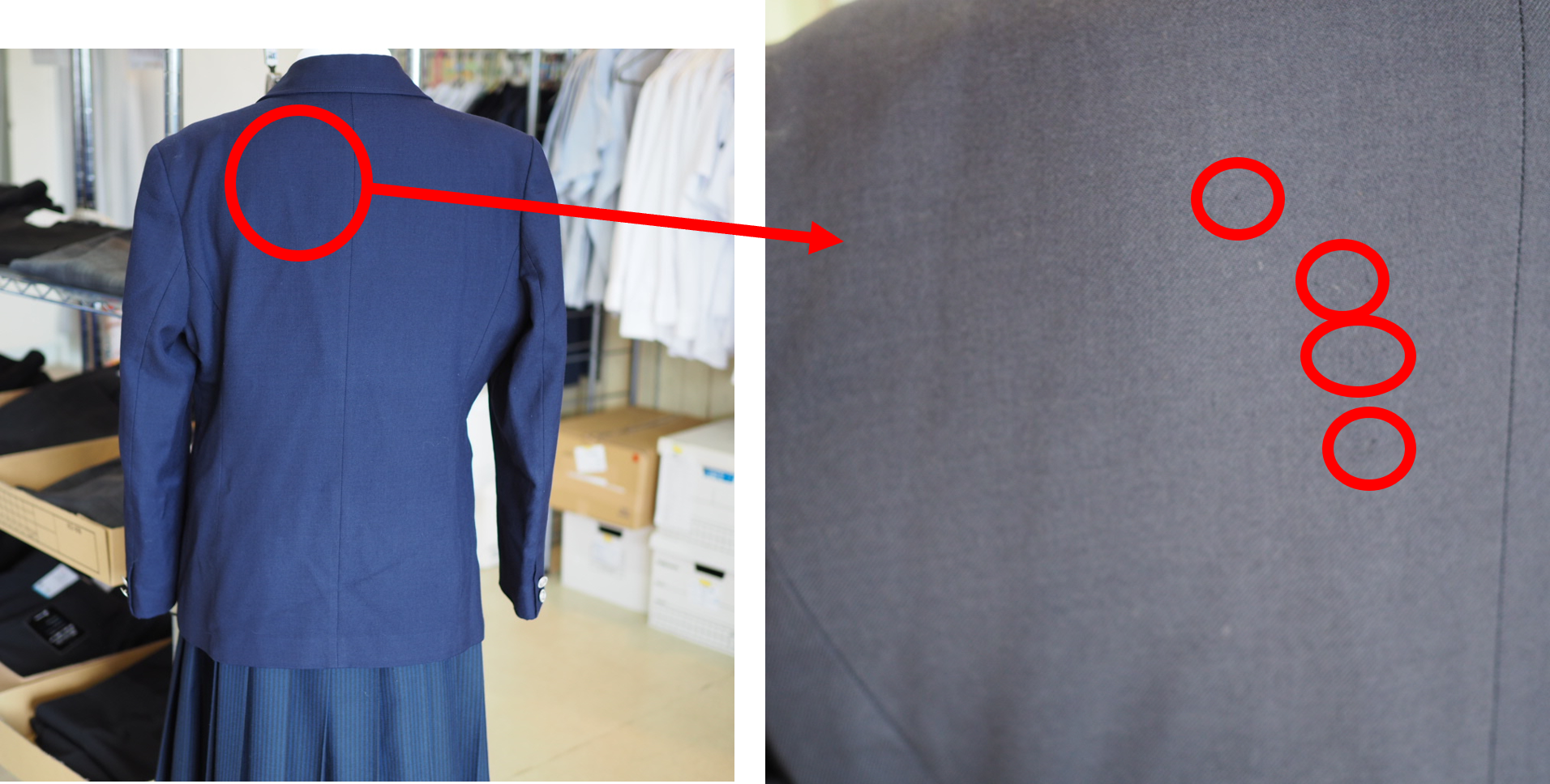 胸ポケット、襟、うしろ裾に白くなっている箇所があります(5~7枚目)