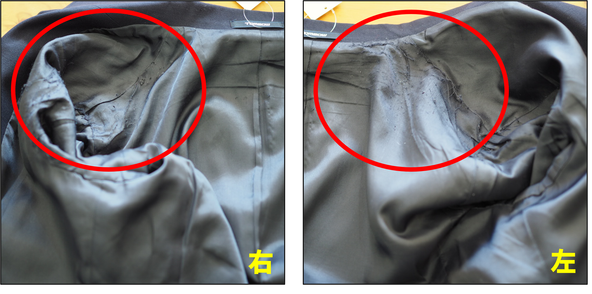 裏地の両腕側に毛玉、毛羽立ち、汚れがあります(4,5枚目)