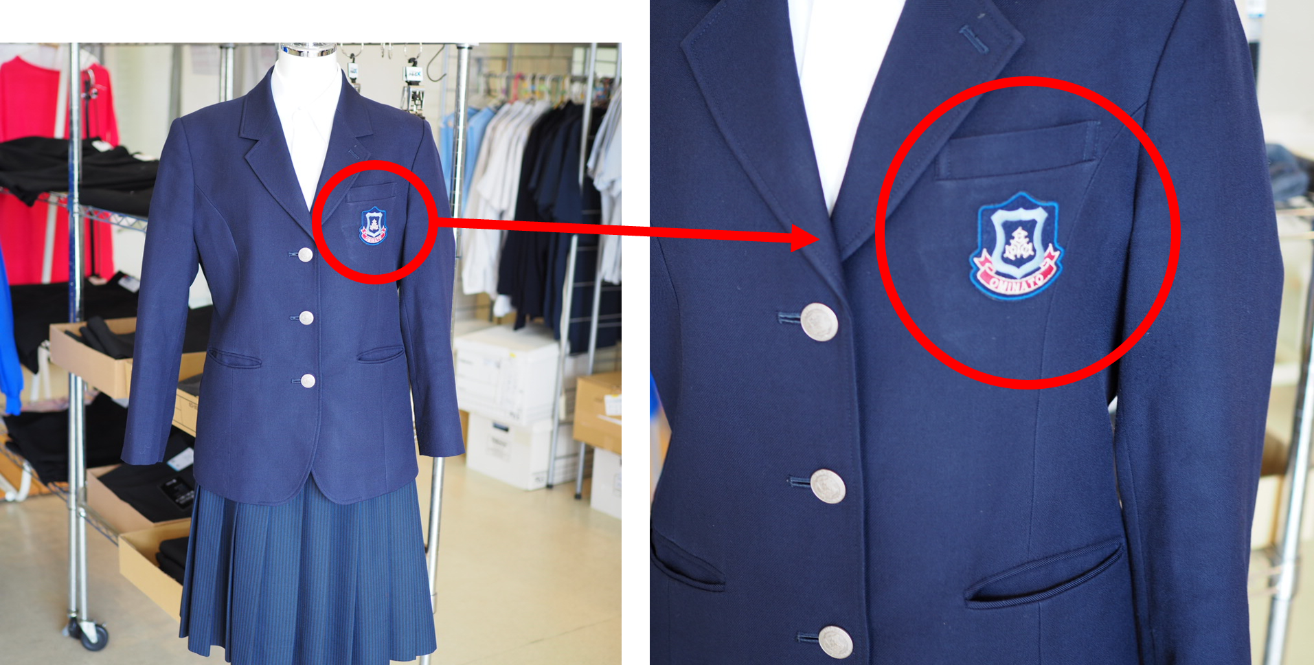 胸ポケット、うしろ裾に白くなっている箇所があります(6,7枚目)