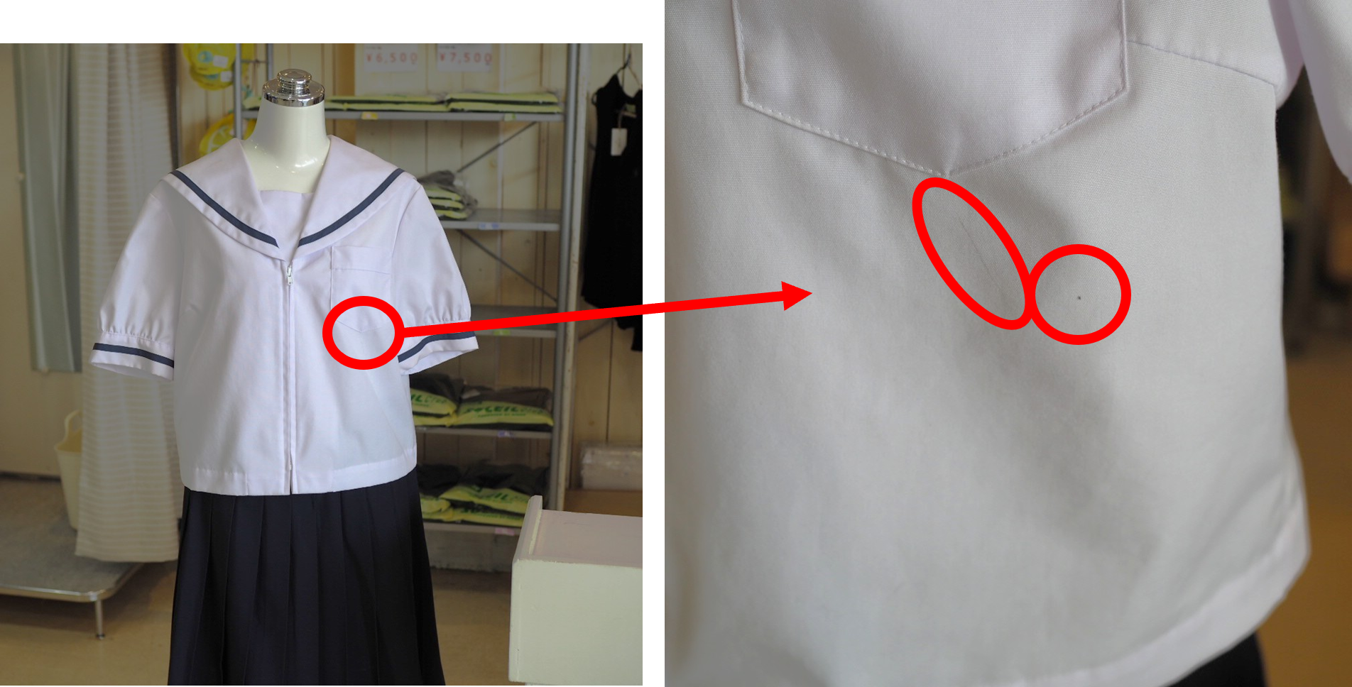 胸ポケット下と前の裾に細かな汚れがあります(4,5枚目)