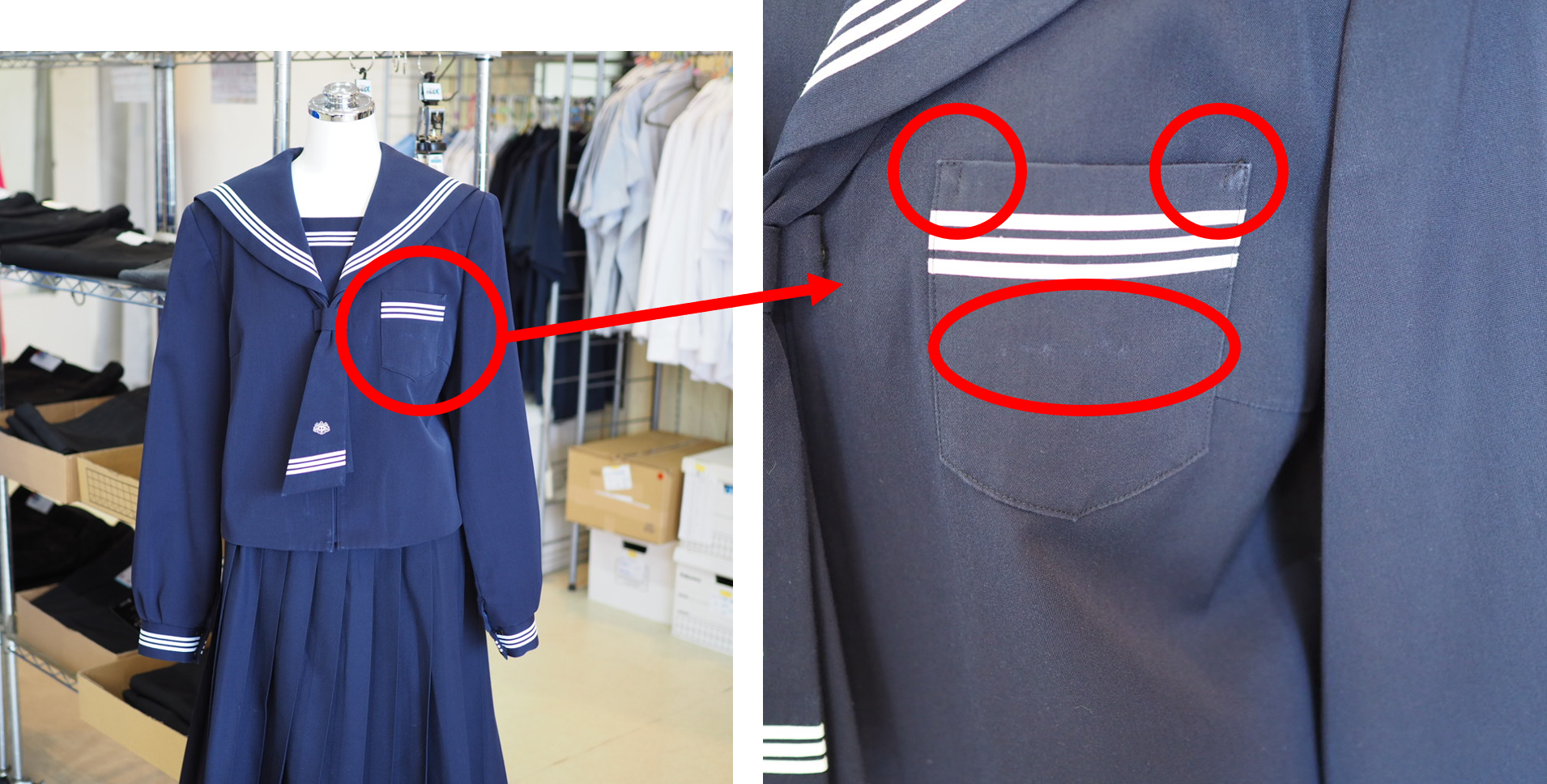 前側胸ポケットと裾が白くなっています(5,6枚目)