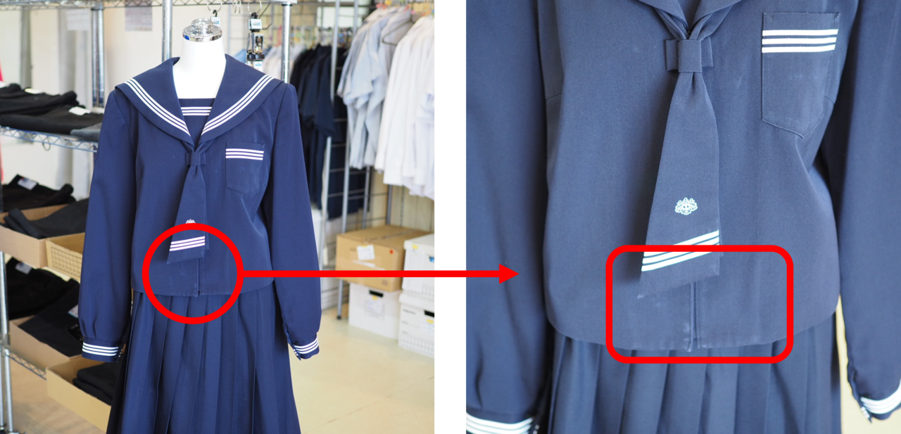 うしろ側襟裾、裾が白くなっています(7,8枚目)