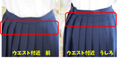 うしろ裾付近の丈縫い目に沿って白くなっています(3枚目)