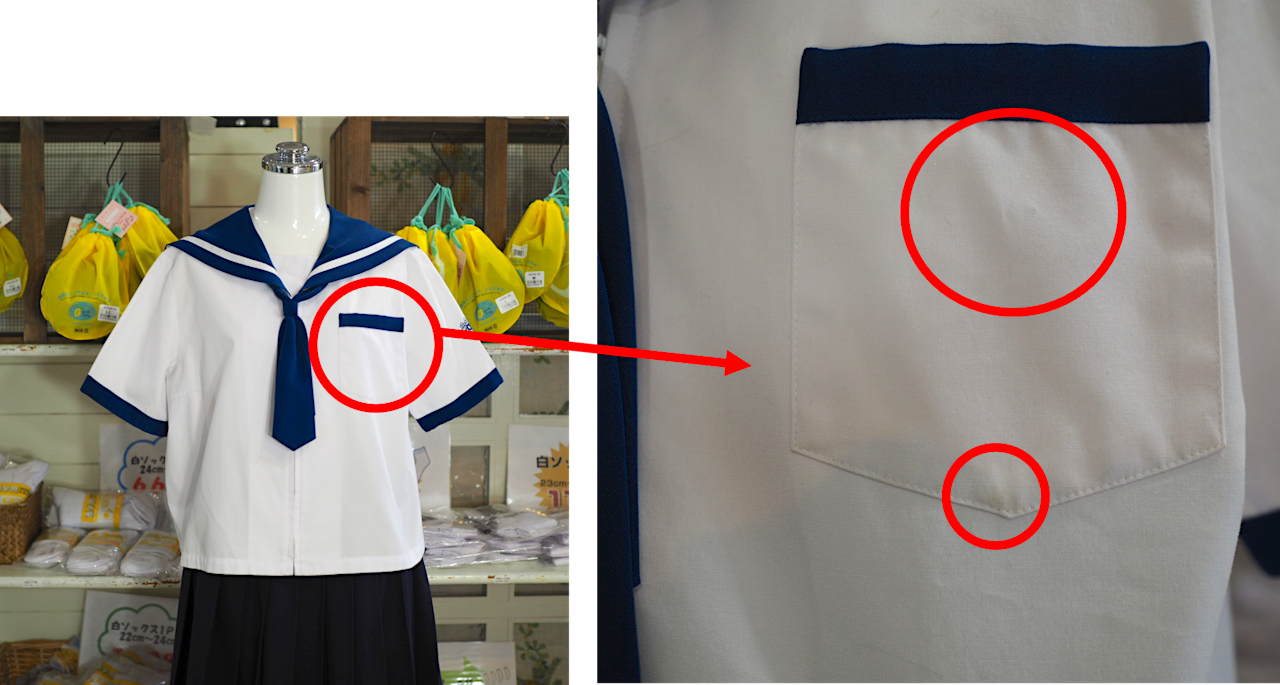 胸ポケット部分、チャック部分、うしろ腰部分に汚れがあります