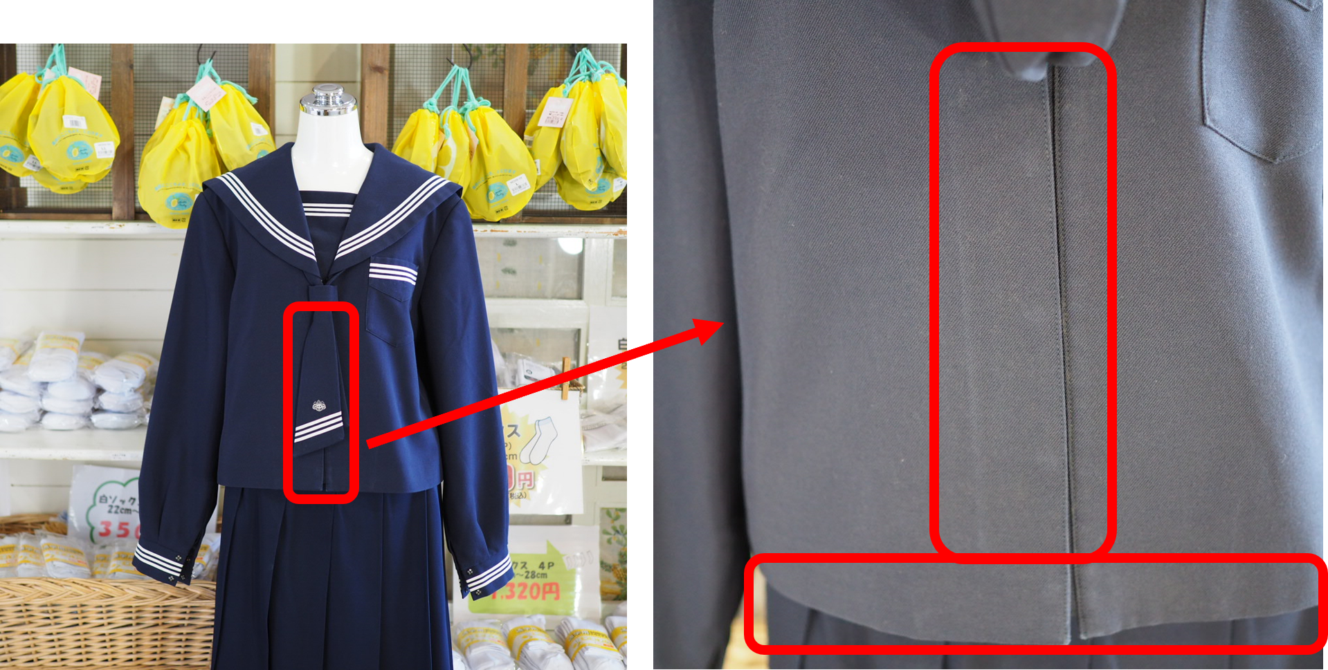 ネクタイ、前内ボタン部分、うしろ裾が白くなっています(6~8枚目)